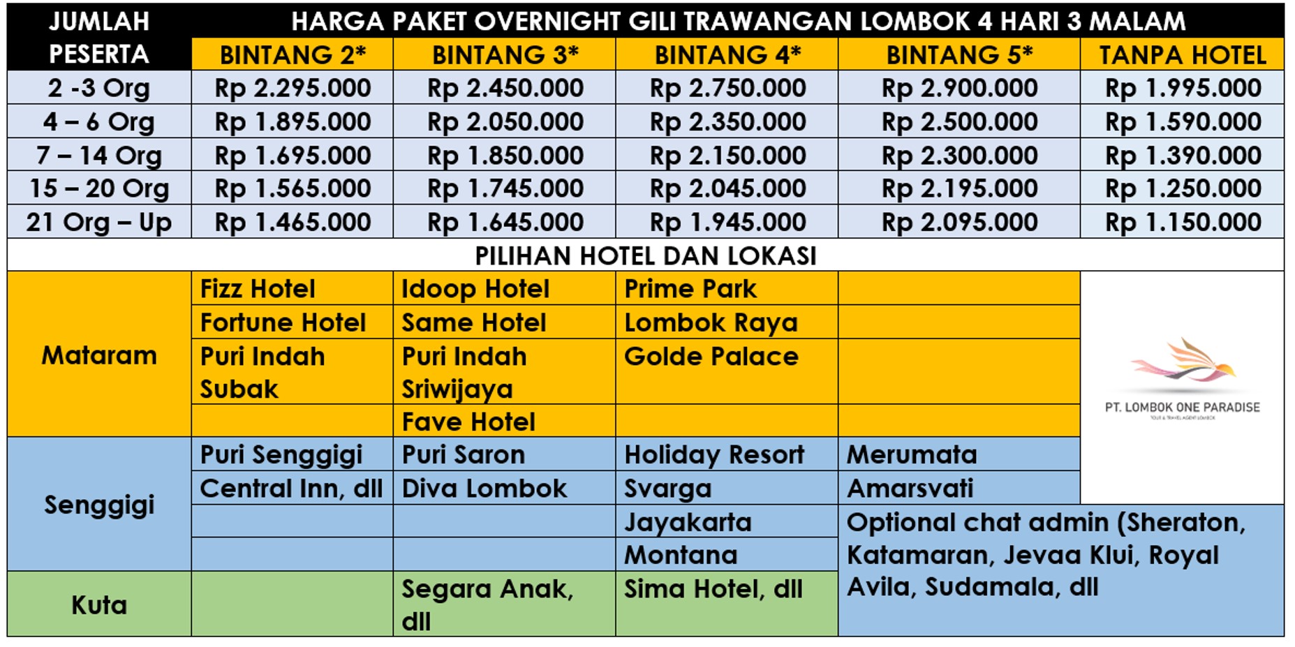 DAFTAR HARGA OVERNIGHT GILI TRAWANGAN A